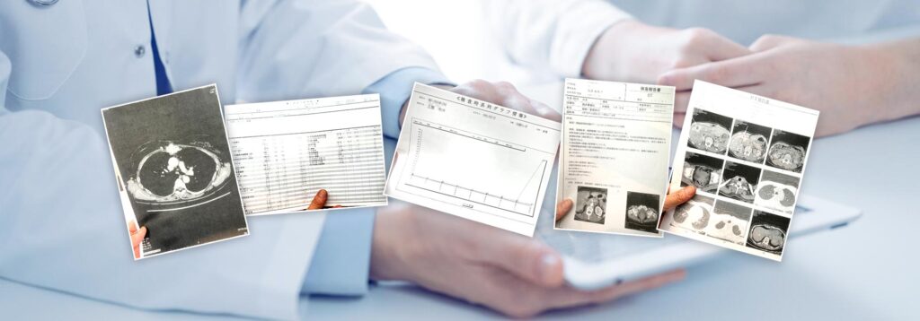 がんに関する病状記載がある資料であれば、治療アドバイスの正確性がさらに向上します。また、診断当初(過去)の資料ではなく、できる限り最新の資料をご送信ください。
