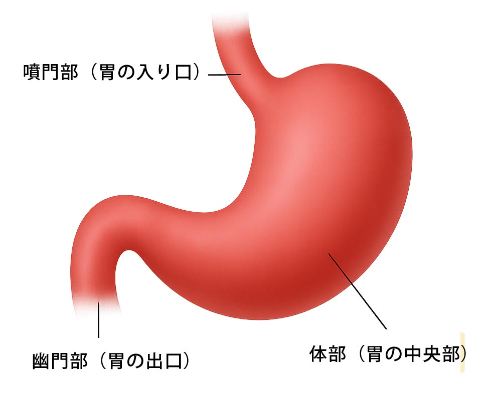 胃は大きく「噴門部(ふんもんぶ)」「体部(たいぶ)」「幽門部(ゆうもんぶ)」などに分けられ、それぞれで発生する胃がんの特徴が異なります。