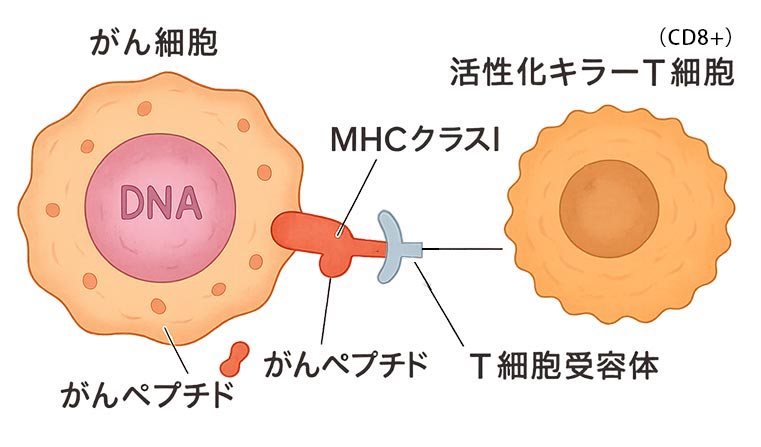 - 免疫細胞(キラーT細胞)がその異常を認識し、「敵」と判断する