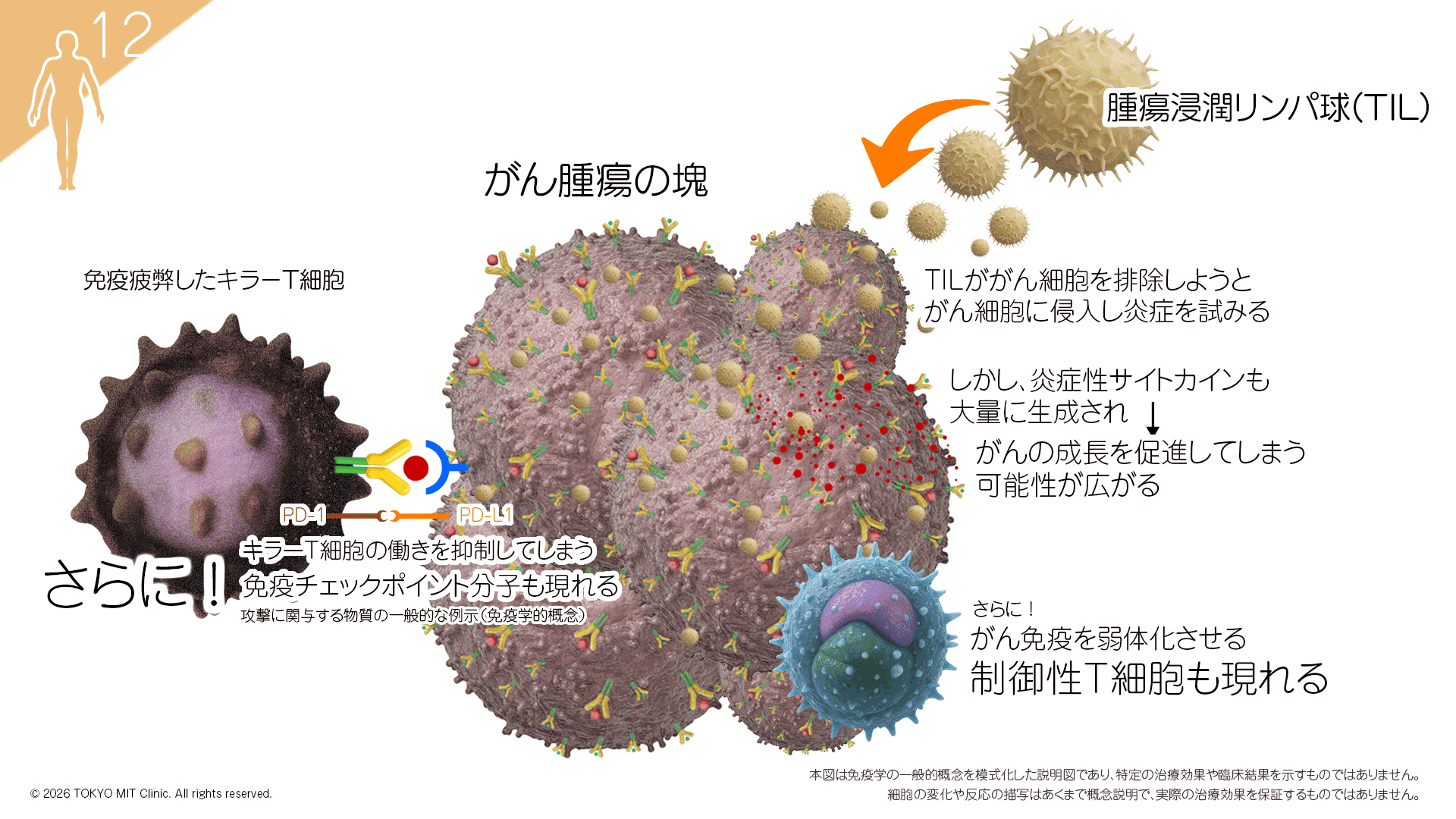 がん細胞が:MHCクラスⅠを減少・消失、PD-L1などでT細胞を無力化、免疫抑制性マクロファージやTreg細胞を誘導し、その結果、免疫反応が十分に働きにくくなる場合があります。。