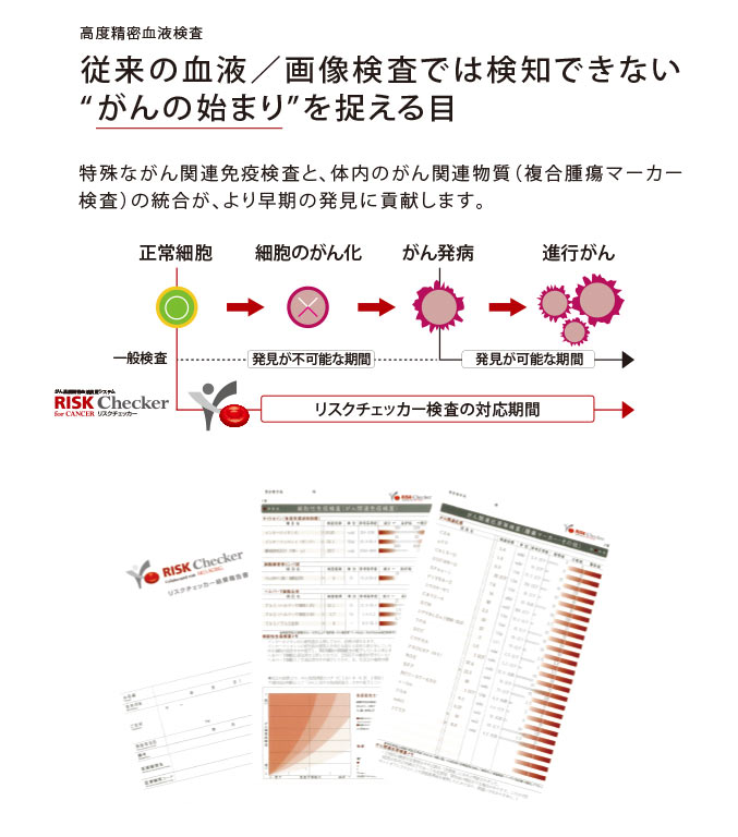 治療を始める前に、高度精密血液検査「リスクチェッカー」を行います。 通常の腫瘍マーカーでは捉えられない免疫×がんの異常シグナルを数値化し、がん細胞が姿を隠した位置や種類、そしてこの治療が適応するかどうかを詳細に分析します。