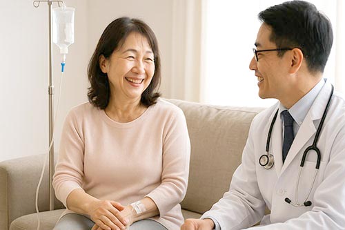 また治療はすべて外来で行われ、入院施設は不要です。点滴・内服いずれも短時間で完了し、日常生活を維持したまま治療を継続できます。