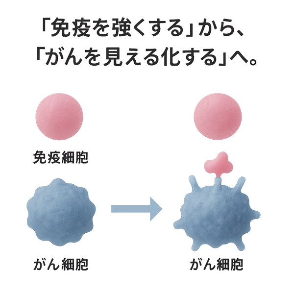 がん細胞を“見える状態”に導き、本来の免疫力をもう一度呼び起こし、”がん”細胞を認知させ反応させることを目指しています。